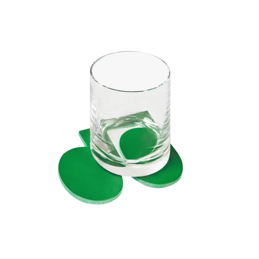 Scattered across a room, peeking out from beneath your favorite mug or nonchalantly drifting across a tabletop, the Disco Coasters punctuate a living space with pure graphic joy. Whilst bringing the party directly to your table, the Disco Coasters also help protect it: High quality, thick Italian leather provides a barrier between your beverage and furniture. This singular natural material has longevity, meaning you are covered for many parties to come. Spiritual Objects, the multi-disciplinary studio of artist and designer Luc Fuller, concerns itself with transforming mundane objects into something more than their sum of parts. So it is with the Disco Coasters; watch them activate your space, enliven your lounge, make every messy tabletop suddenly picture-ready.