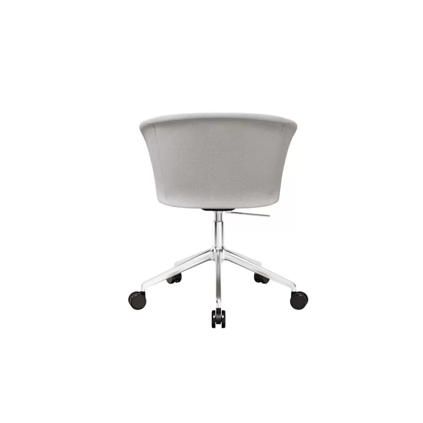 The Kendo Chair’s soft, wrap-around upper offers an appealingly ergonomic seating experience. Simultaneously protective and inviting, this design by LucidiPevere offers a shielding shape combined with a gentle embrace. The generous seat is wide and comfortable, allowing you to move freely, shift position, express yourself. Whether around a boardroom or a dining table, Kendo keeps you comfortable for long periods of time. Its sturdy welded frame makes this chair built to last.Both Kendo Swivel leg bases are 360° rotational. The 4-star leg base incorporates a return function to keep the chairs perfectly aligned around a table when not in use, while the 5-star leg base has a height adjustable mechanism. All variants are available in powder-coated or polished aluminum.