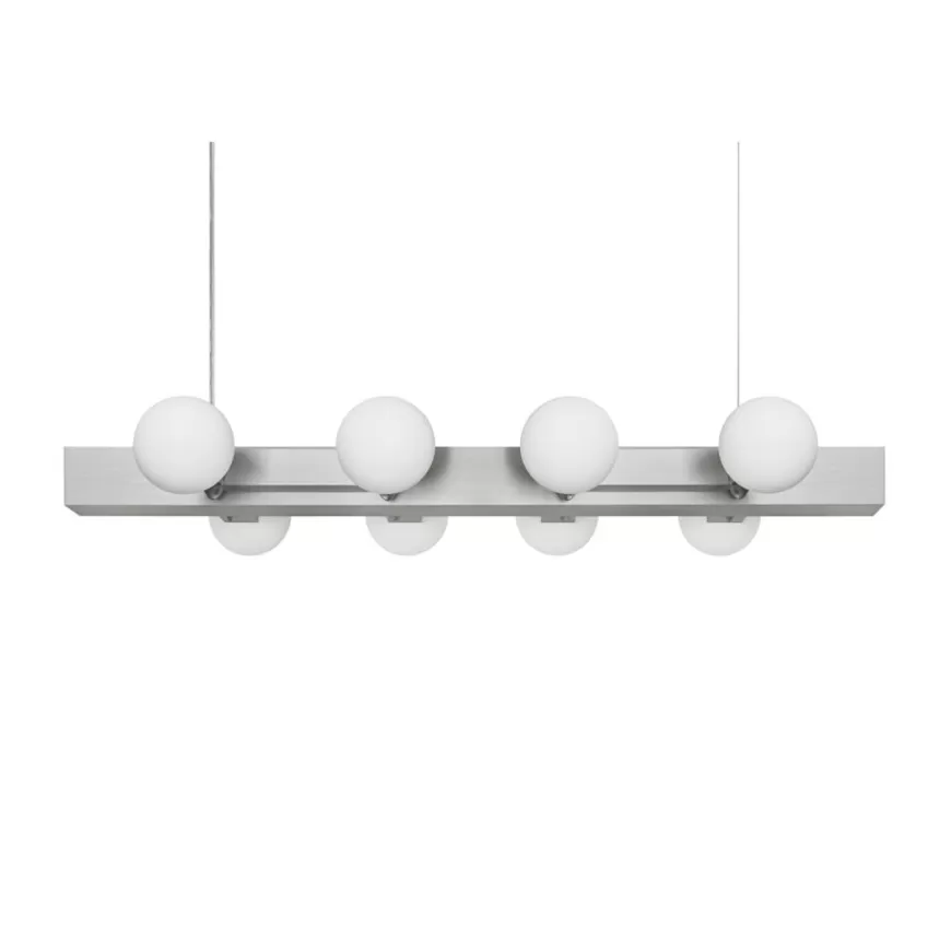 The Knuckle Lights by David Taylor are an exercise in visual balance, a kind of joyful play between the organic and the geometric. Knuckle is inspired by Taylor’s signature bent extruded aluminum art pieces, which are created by forcing this most stringent of materials into new shapes and forms. This method of working, translated into Knuckle, creates a sense of softness and fluidity uncommon in an industrial product. Knuckle comes in the form of a modest table light with one bulb, and as a chandelier version, resplendent with eight bulbs. The table light is nicely weighted, with a brushed aluminum finish that reflects the light from the bulb in a soft, muted way. The bend in the lighting arm gives the design a truly fluid sensibility, and a raw yet refined beauty. The horizontally configured chandelier expands Taylor’s idea onto a much grander scale, and works as a design centerpiece; visually fascinating and temptingly tactile all at once. Knuckle is a piece that plays with our perception, sense of materiality, and with the idea of harmony itself.