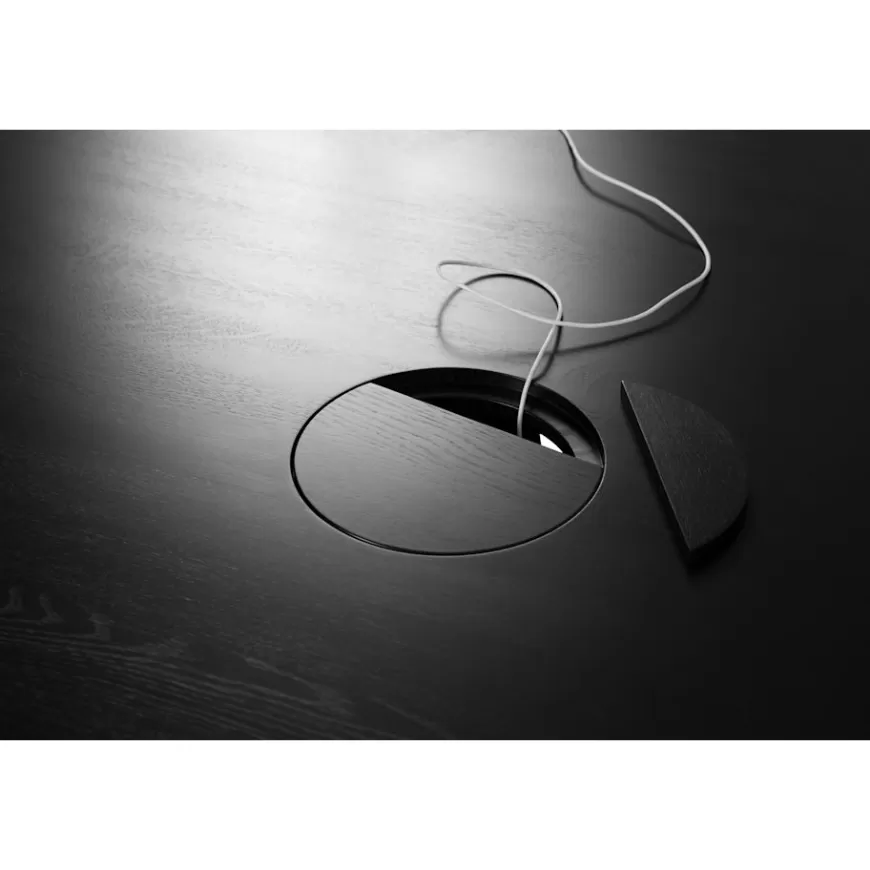 The solid-oak Alle Tables by Staffan Holm are a family of furniture that is especially Hem: traditional modes of making reclaimed for modern manufacture; good looks and practicality given equal consideration; engineering and handwork combined; quality materials used liberally. The Alle Round Table shares the same key features as the other members of the family, in particular a softly rounded edge and a clever construction that requires no tools for assembly. Alle means “everyone” in German, and this table is a true reflection of the design principles we cherish. The Round Media variation of the Alle Table comes with media ports and hidden compartments for neat storage and cable management, helping you work more efficiently.