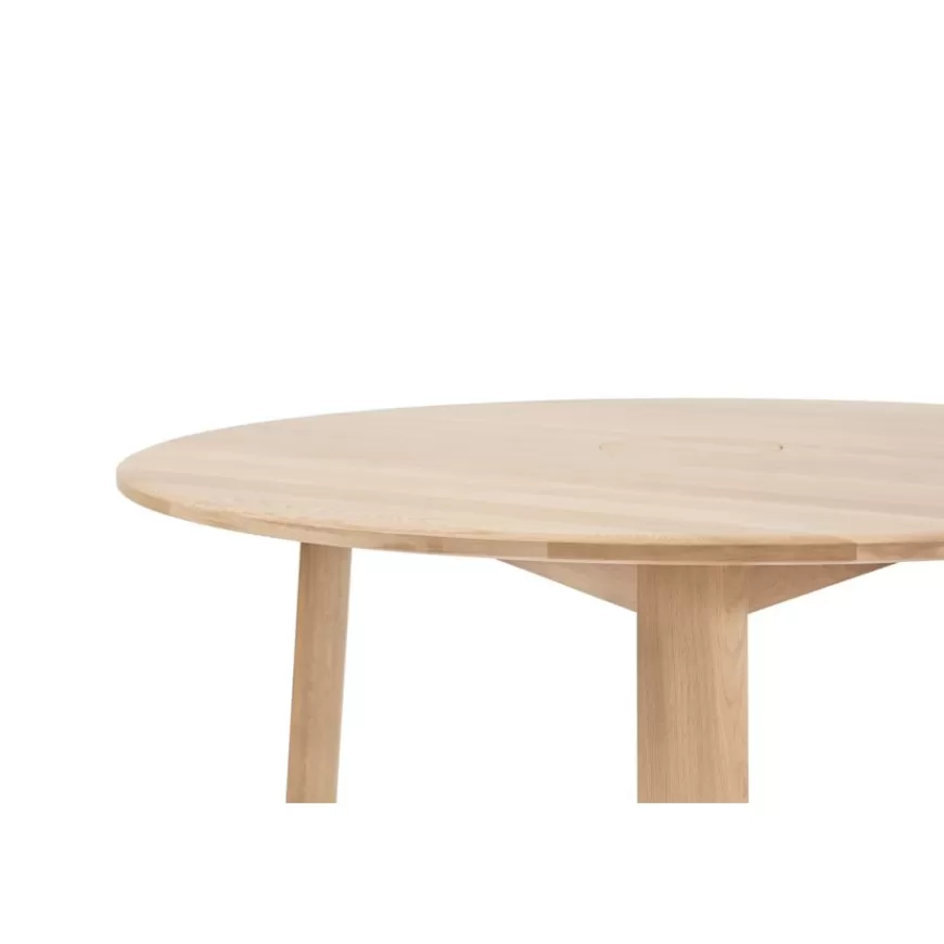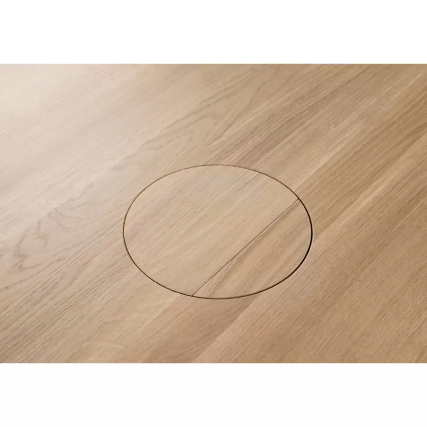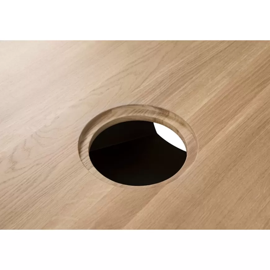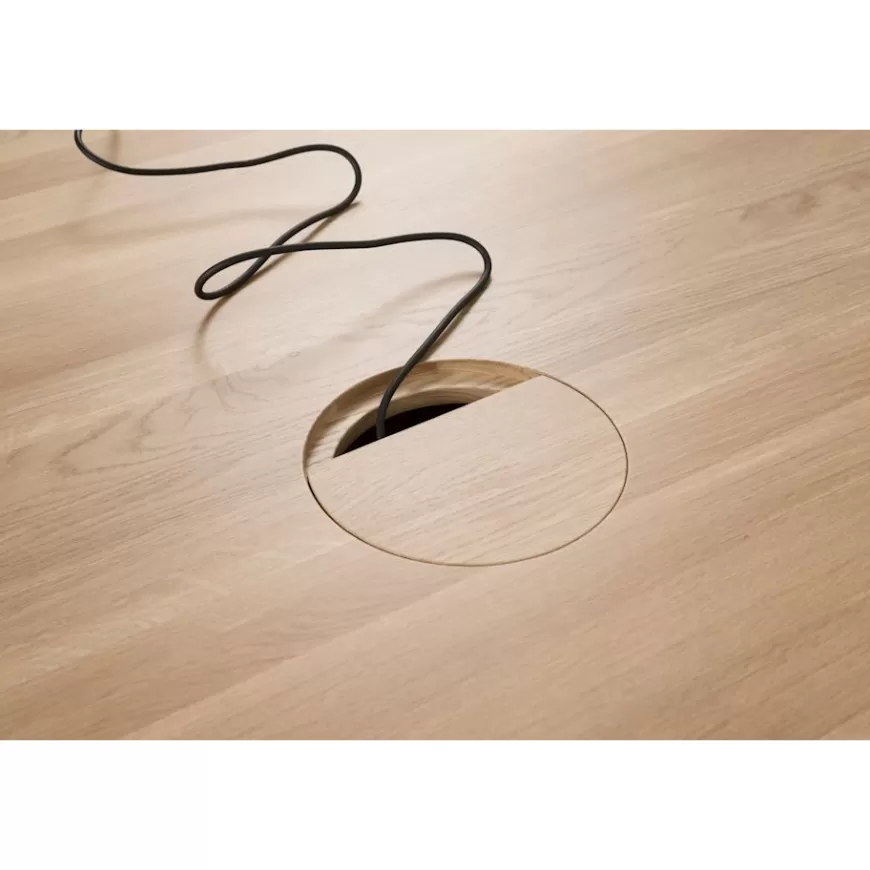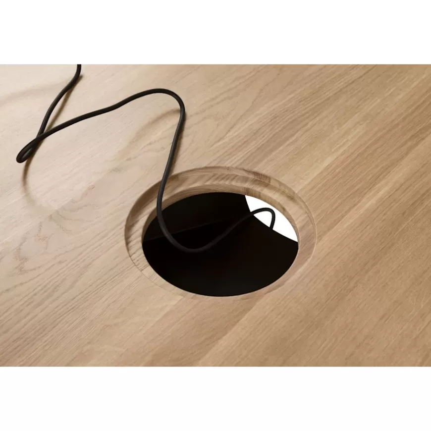 The solid-oak Alle Tables by Staffan Holm are a family of furniture that is especially Hem: traditional modes of making reclaimed for modern manufacture; good looks and practicality given equal consideration; engineering and handwork combined; quality materials used liberally. The Alle Round Table shares the same key features as the other members of the family, in particular a softly rounded edge and a clever construction that requires no tools for assembly. Alle means “everyone” in German, and this table is a true reflection of the design principles we cherish. The Round Media variation of the Alle Table comes with media ports and hidden compartments for neat storage and cable management, helping you work more efficiently.