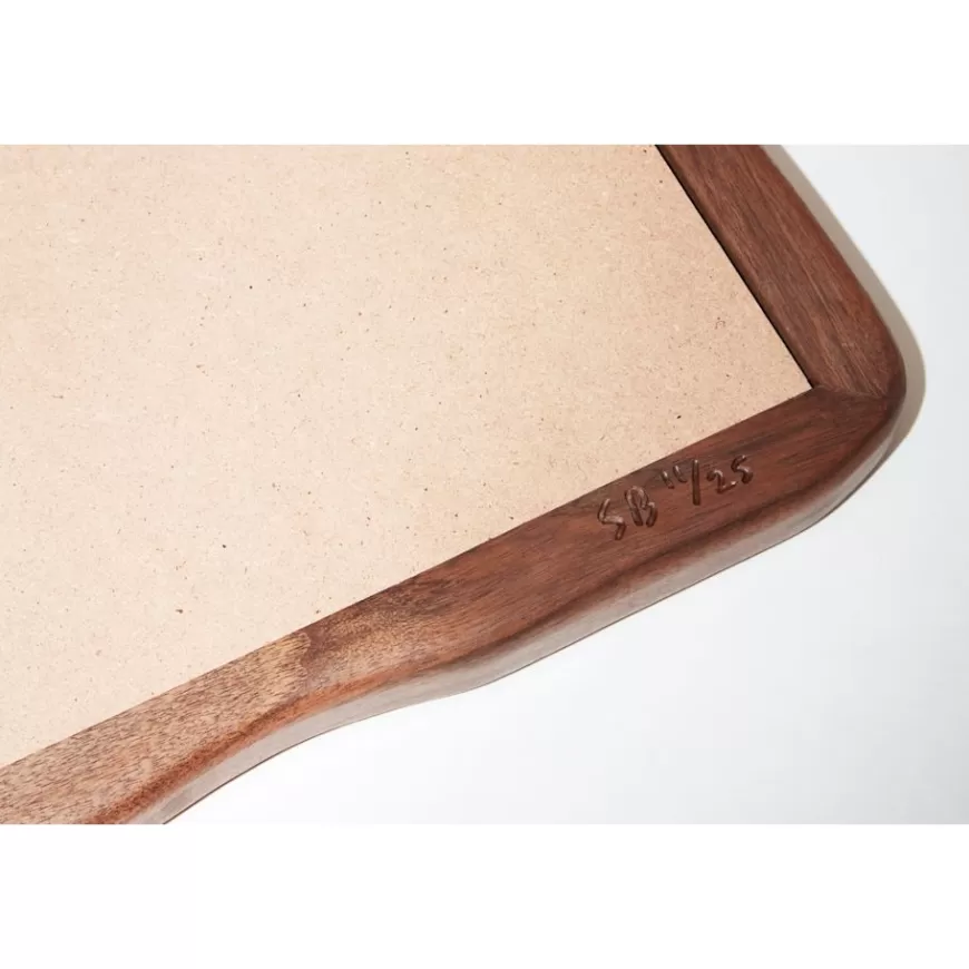 With its erratic lines and deeply decorative intention, Wiggle is a picture frame that breaks all the rules. It dares to pull your gaze away from the art it holds. The limited-edition Wiggle frames by Soft Baroque are bold, ornate, unapologetically the main event on your wall. The undulating outline of each of these 25 walnut wood was hand-drawn before being hand-carved and is therefore unique. Wiggle, in all its playful irreverence, is the perfect offering from contemporary design’s most compelling studio; Soft Baroque. Each frame is original, signed and numbered, and comes with a ‘placeholder’ poster.Curated by Modern Design Review, Wiggle Box Frame comes in a hand-signed limited edition of 25, made exclusively for Hem.As each piece is handmade, individual differences will occur, making it a unique and one-of-a-kind product.