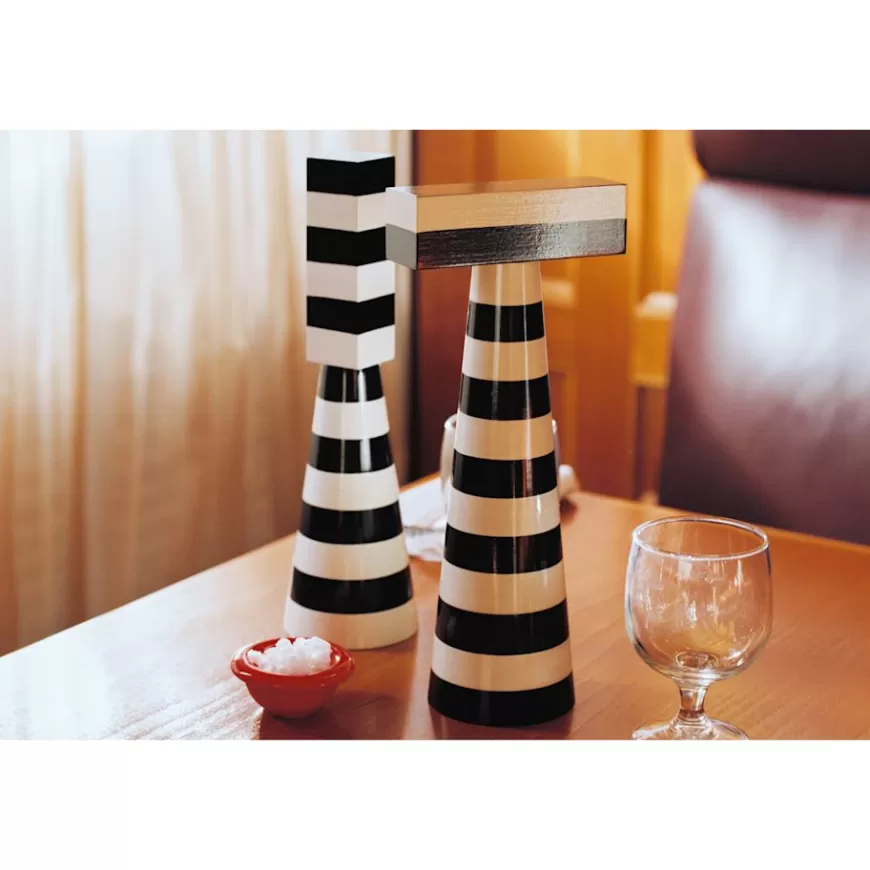 Think of the Molino Grinder as a functional sculpture for your tabletop. This super-sized utensil is efficient at granulating salt, pepper and spices, and its blown-up form is a graphic monument for your dinner table, too. Molino is a characteristically exuberant design from Fabien Cappello whose work reflects the energy and vivacity of Mexico, where he lives and works. The hand-painted, striped Molino grinders are made from turned solid beech wood and finished with high-gloss lacquer, while the solid beech Molino grinders are finished with a sheen lacquer to bring out the beauty of their natural properties.