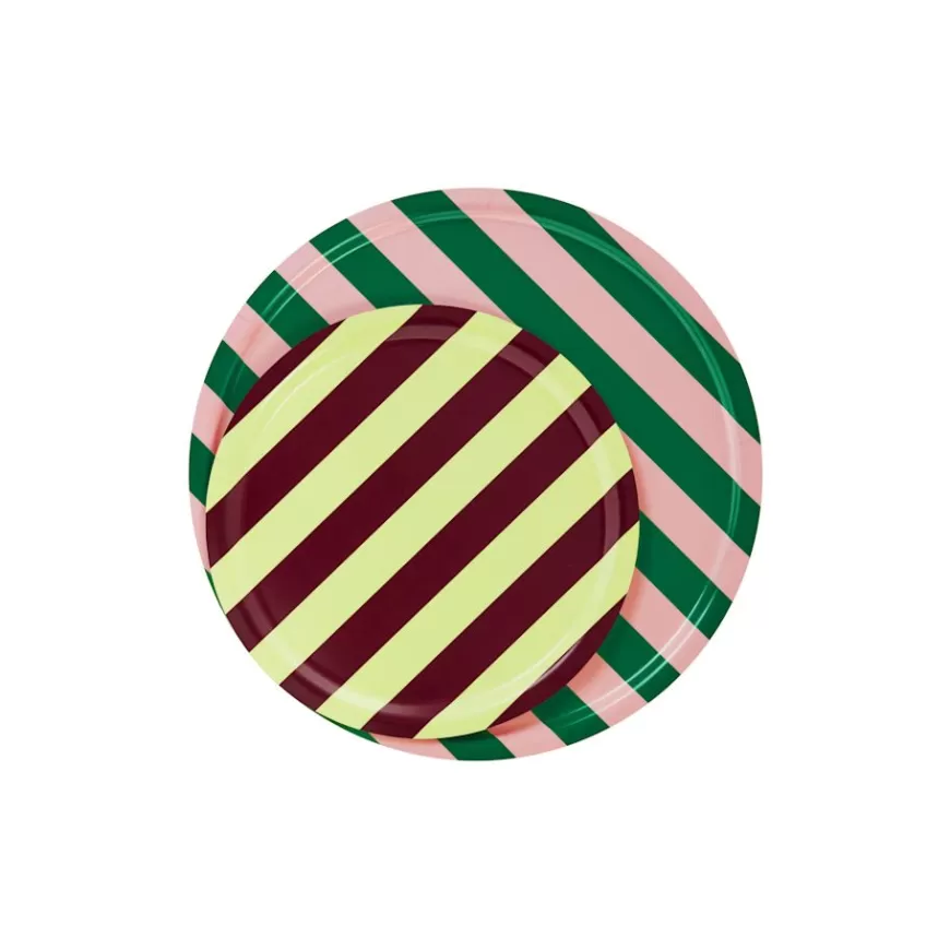 Every supporting act needs to work hard. The Stripe Tray by pattern maestro and long-time Hem collaborator Arthur Arbesser is just such a household tool. The Stripe Tray is made using a traditional technique in Southern Sweden, where layers of birch veneer and a printed paper motif are molded together using heat and pressure. A laminated melamine surface means that the Stripe Tray is as resilient as it is attractive. Much more than a merely functional kitchen object, whether casually lent against a work surface, stacked upon a countertop or in use safely delivering drinks or dinner to their destination, the Stripe Trays bring undiluted color and graphic impact wherever they go.