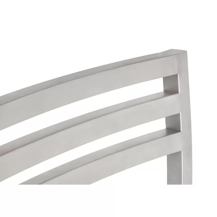 The Chop Chair by Philippe Malouin is an evergreen design conceived for use in a range of public and private outdoor spaces. Beautifully proportioned, with subtle curvatures, it is intentionally simple, in both construction and style. Chop reimagines a classic slatted-chair archetype to create a silhouette that is immediately recognizable, yet pleasingly unknown. The idea for the design was influenced by Malouin’s work in the art world, where he often utilizes hand-led industrial techniques to develop striking forms that accentuate the object's materiality. The Chop collection is cut, bent and welded from durable stainless steel, and is available in a raw, sandblasted or powder-coated colored finish. A design for all seasons, Chop is correctly weighted to resist wind, while still being light enough to move around and stack with ease.