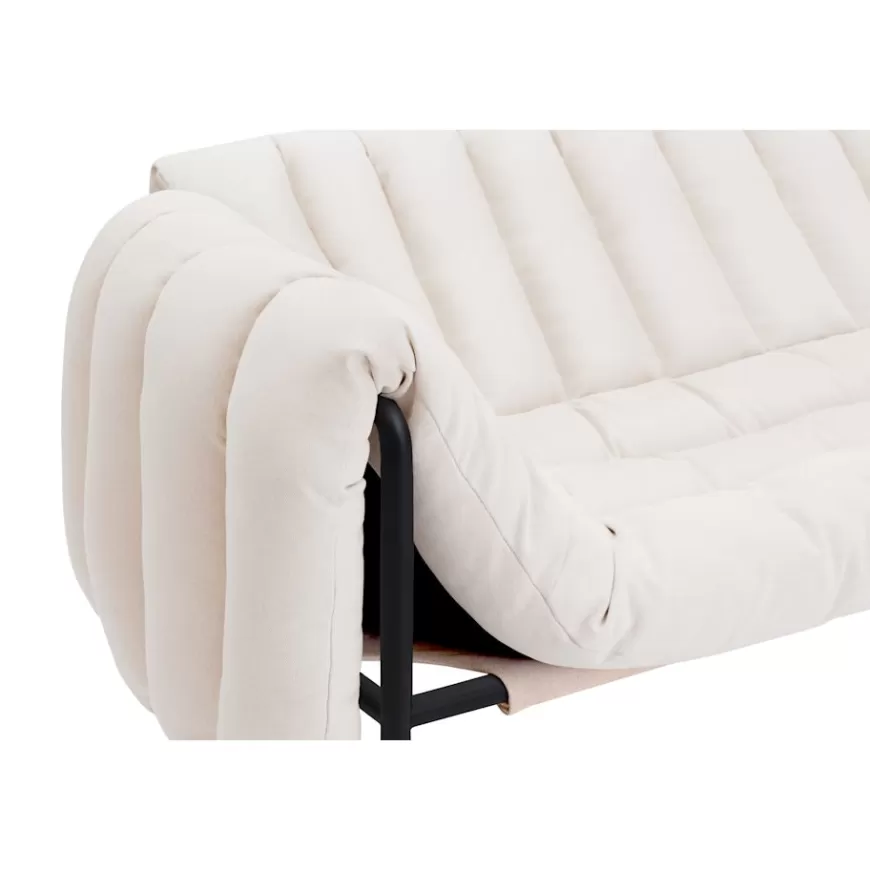 Voluminous, plush, instantly recognizable, the Puffy series by Faye Toogood has quickly become a coveted contemporary standard. This stylish seating offers maximum impact and extreme comfort. The Puffy Sofa is a variation on a theme, sharing all the same qualities as its Puffy siblings, but in a size big enough to share. Sink into the extravagant quilt-like upholstery alongside friends, and you can indulge in the reassuring comfort of the plump padding with loved ones. The Puffy family is made up of a generous upholstery cover supported on a rigid steel frame. Our Puffy Sofa is a 2.5 seater, meaning it is compact enough for small spaces, yet luxuriously roomy for a plus-one situation. The Puffy Sofa frame is available in powder-coated or sand-blasted steel finishes and a choice of thick canvas or luxurious leather upholstery.