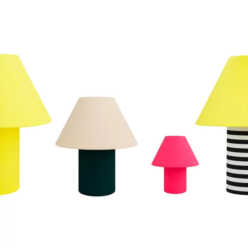 Toto is an irrepressible burst of color and light. Its silhouette is that of an archetypal lamp, all-angled shade and a chunky base. But that is where the familiarity ends. Toto is entirely covered from textile as a playful extension of the classic lampshade itself. Material uniformity, coupled with vivid color and graphic pattern, lends the lamp a cartoonish presence. So does exaggerated scale; the Toto Large lamp is blown up, jumbo, never-to-be-ignored, visually giant yet physically light, while Toto Small’s tidy and diminutive size is more than a bit charming. With Toto, Fabien Cappello has designed a joyful, covetable depiction of a lamp. Customers can choose their own combination for shade and base in both Toto Large and Medium variants. Toto Small is available in block colors only.