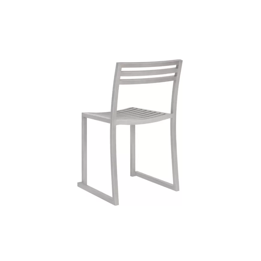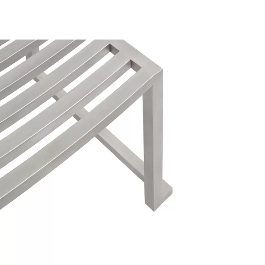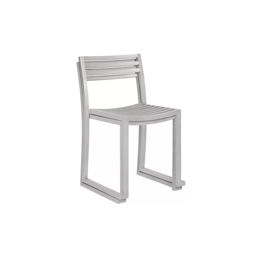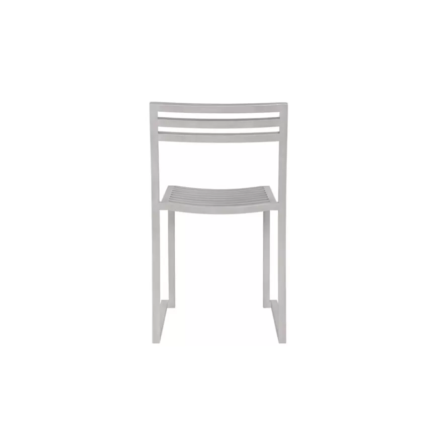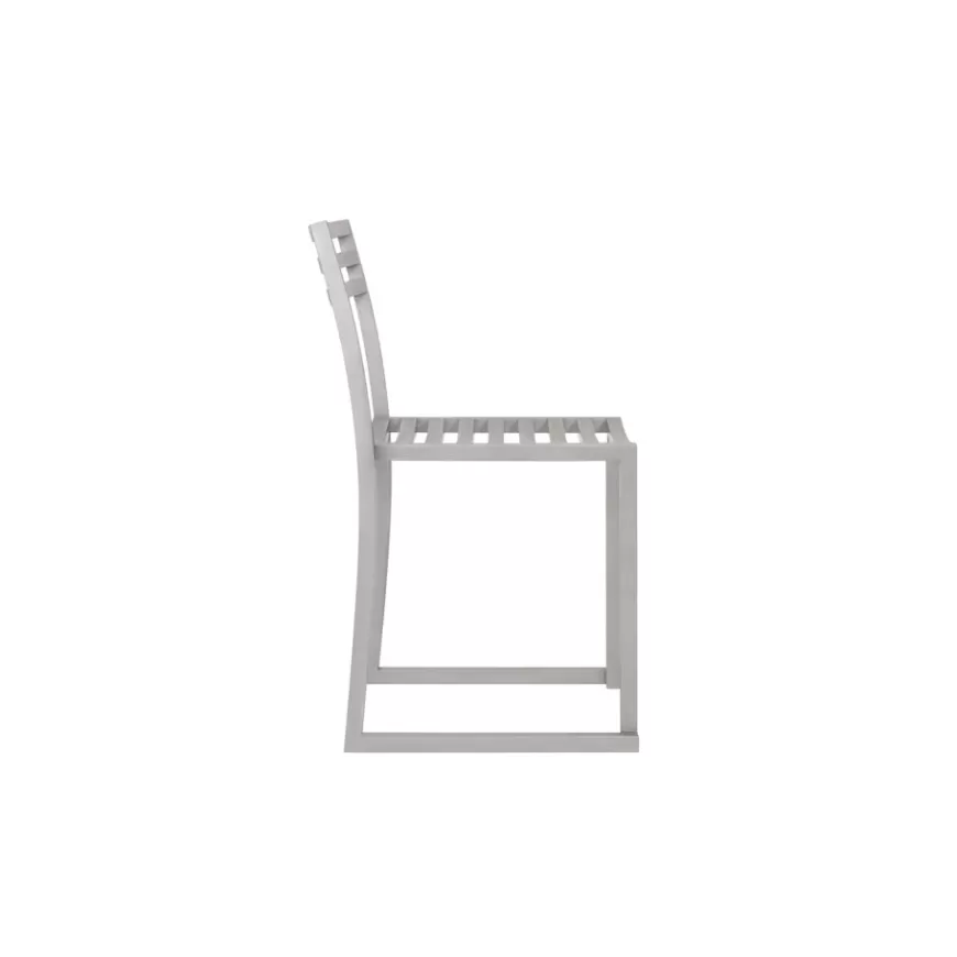 The Chop Chair by Philippe Malouin is an evergreen design conceived for use in a range of public and private outdoor spaces. Beautifully proportioned, with subtle curvatures, it is intentionally simple, in both construction and style. Chop reimagines a classic slatted-chair archetype to create a silhouette that is immediately recognizable, yet pleasingly unknown. The idea for the design was influenced by Malouin’s work in the art world, where he often utilizes hand-led industrial techniques to develop striking forms that accentuate the object's materiality. The Chop collection is cut, bent and welded from durable stainless steel, and is available in a raw, sandblasted or powder-coated colored finish. A design for all seasons, Chop is correctly weighted to resist wind, while still being light enough to move around and stack with ease.