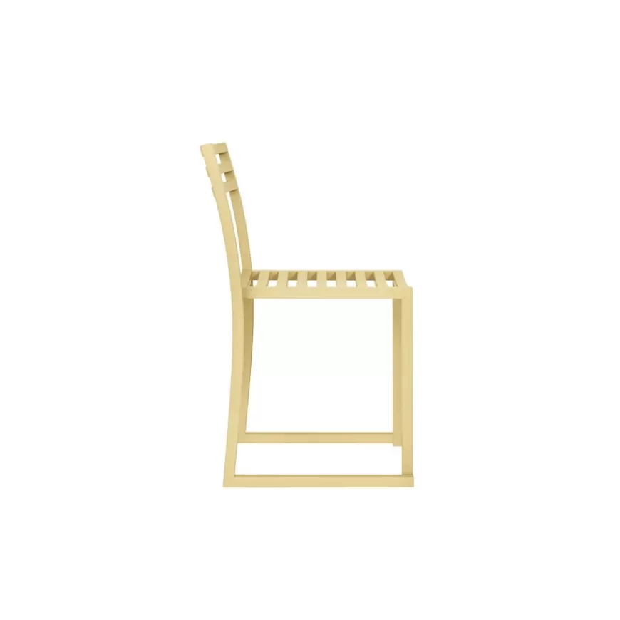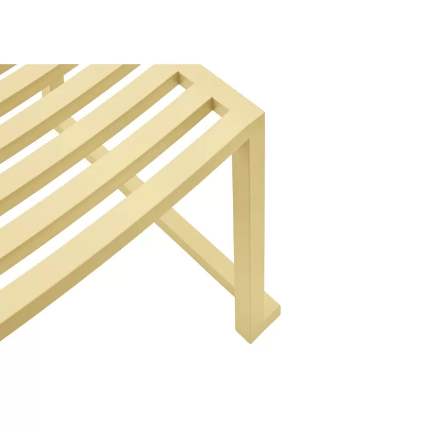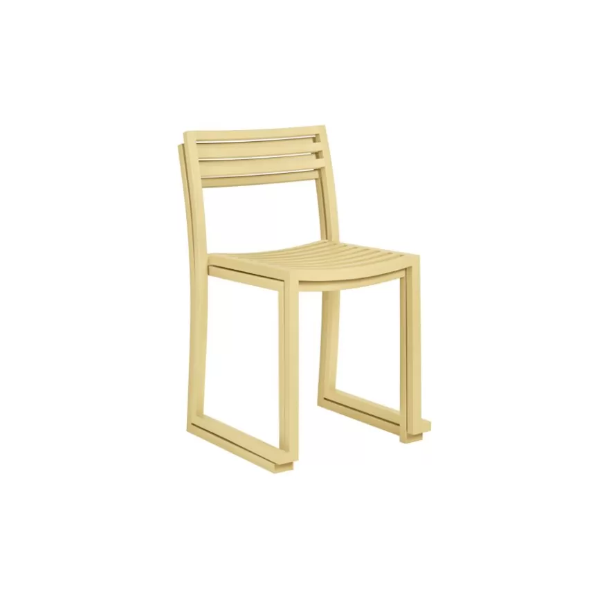 The Chop Chair by Philippe Malouin is an evergreen design conceived for use in a range of public and private outdoor spaces. Beautifully proportioned, with subtle curvatures, it is intentionally simple, in both construction and style. Chop reimagines a classic slatted-chair archetype to create a silhouette that is immediately recognizable, yet pleasingly unknown. The idea for the design was influenced by Malouin’s work in the art world, where he often utilizes hand-led industrial techniques to develop striking forms that accentuate the object's materiality. The Chop collection is cut, bent and welded from durable stainless steel, and is available in a raw, sandblasted or powder-coated colored finish. A design for all seasons, Chop is correctly weighted to resist wind, while still being light enough to move around and stack with ease.