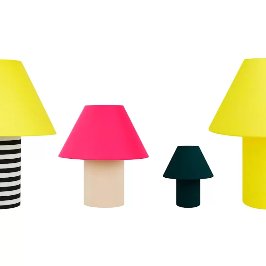 Toto is an irrepressible burst of color and light. Its silhouette is that of an archetypal lamp, all-angled shade and a chunky base. But that is where the familiarity ends. Toto is entirely covered from textile as a playful extension of the classic lampshade itself. Material uniformity, coupled with vivid color and graphic pattern, lends the lamp a cartoonish presence. So does exaggerated scale; the Toto Large lamp is blown up, jumbo, never-to-be-ignored, visually giant yet physically light, while Toto Small’s tidy and diminutive size is more than a bit charming. With Toto, Fabien Cappello has designed a joyful, covetable depiction of a lamp. Customers can choose their own combination for shade and base in both Toto Large and Medium variants. Toto Small is available in block colors only.