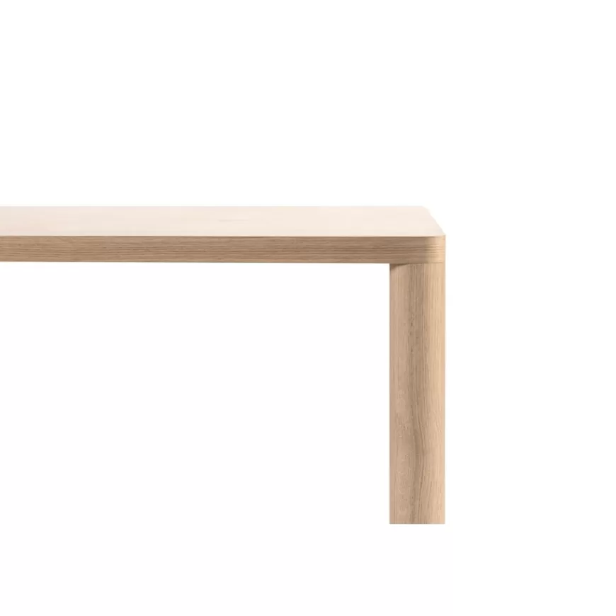 The Log Table is archetypal, its clean lines and refined silhouette contrived by designer Julien Renault, whose intention was to make a quintessential table for work or play. Its streamlined design cleverly conceals its engineering: a veneer-covered honeycomb core keeps the tabletop light, allowing it to span a great distance. Purposefully robust legs anchor the table and give it stability, and their simple screw connections make assembly straightforward. The ever-so-pleasing curved edge and rounded lines of the legs gently soften the overall effect.