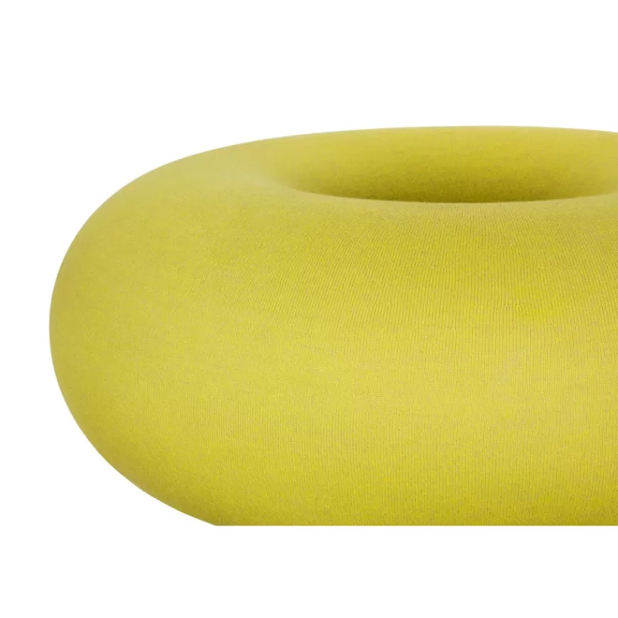 The donut-shaped Boa Pouf by Sabine Marcelis is perfectly sculptural; a bold graphic form that interrupts interior landscapes with its faultless chunky geometry. This piece of upholstered occasional furniture is rounded and soft, encased in a seamless outer layer that gives it an air-brushed finish: The smooth shape-knit textile that covers the Boa Pouf is a milestone in technologically innovative furniture making. Boa Pouf is as perfect for perching on, propping up feet, lounging against, as it is for making a sculptural statement and is the ideal expression of designer Sabine Marcelis, whose work is characterized by resonating clear, single, notes of absolute material, textile and color.