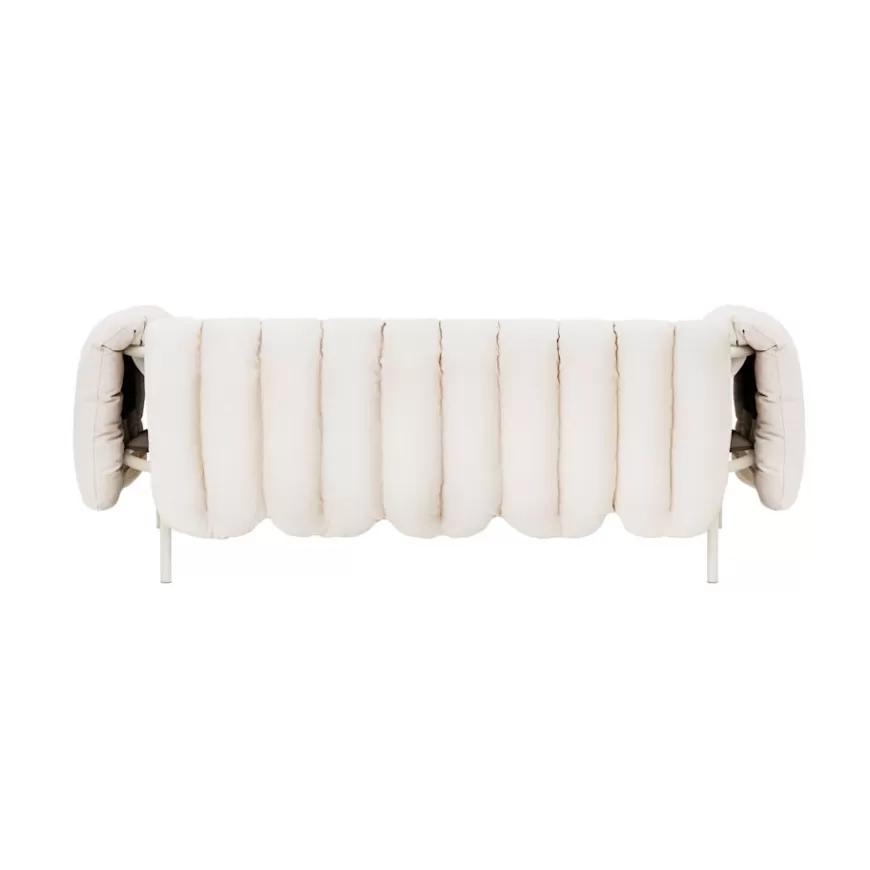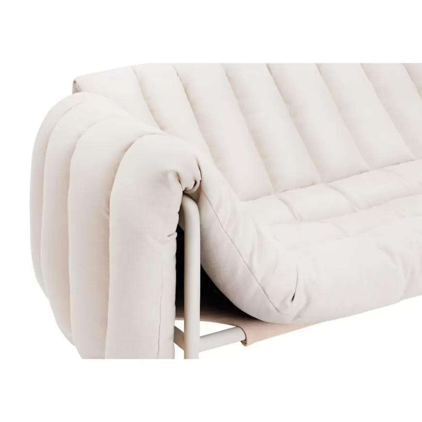 Voluminous, plush, instantly recognizable, the Puffy series by Faye Toogood has quickly become a coveted contemporary standard. This stylish seating offers maximum impact and extreme comfort. The Puffy Sofa is a variation on a theme, sharing all the same qualities as its Puffy siblings, but in a size big enough to share. Sink into the extravagant quilt-like upholstery alongside friends, and you can indulge in the reassuring comfort of the plump padding with loved ones. The Puffy family is made up of a generous upholstery cover supported on a rigid steel frame. Our Puffy Sofa is a 2.5 seater, meaning it is compact enough for small spaces, yet luxuriously roomy for a plus-one situation. The Puffy Sofa frame is available in powder-coated or sand-blasted steel finishes and a choice of thick canvas or luxurious leather upholstery.