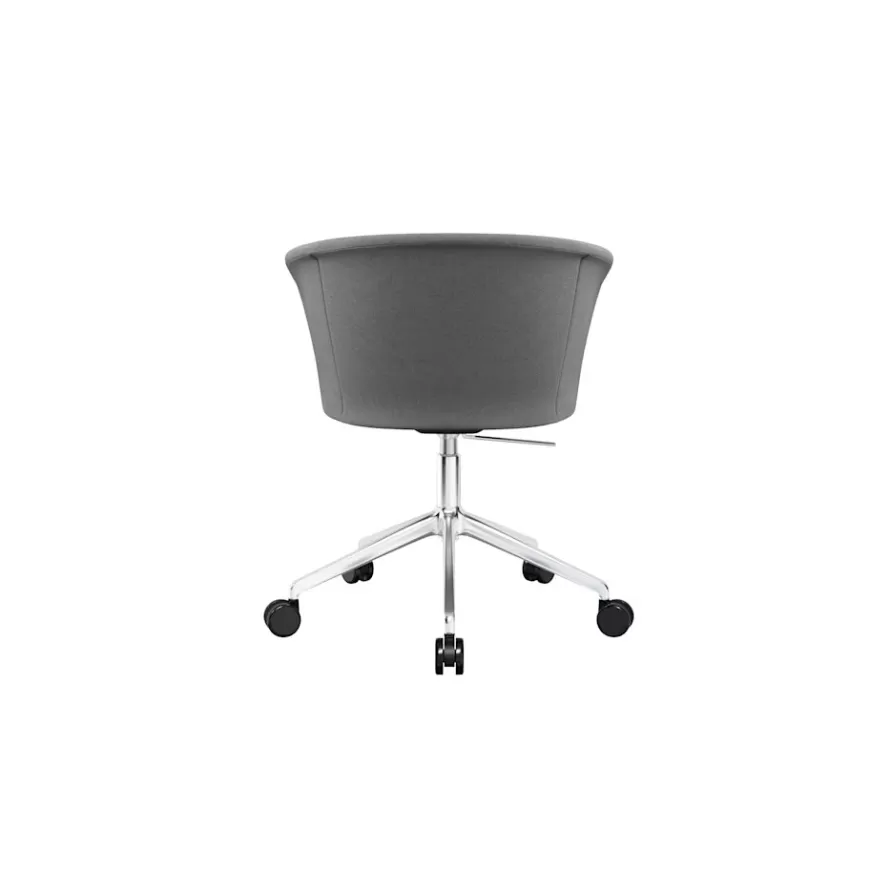 The Kendo Chair’s soft, wrap-around upper offers an appealingly ergonomic seating experience. Simultaneously protective and inviting, this design by LucidiPevere offers a shielding shape combined with a gentle embrace. The generous seat is wide and comfortable, allowing you to move freely, shift position, express yourself. Whether around a boardroom or a dining table, Kendo keeps you comfortable for long periods of time. Its sturdy welded frame makes this chair built to last.Both Kendo Swivel leg bases are 360° rotational. The 4-star leg base incorporates a return function to keep the chairs perfectly aligned around a table when not in use, while the 5-star leg base has a height adjustable mechanism. All variants are available in powder-coated or polished aluminum.