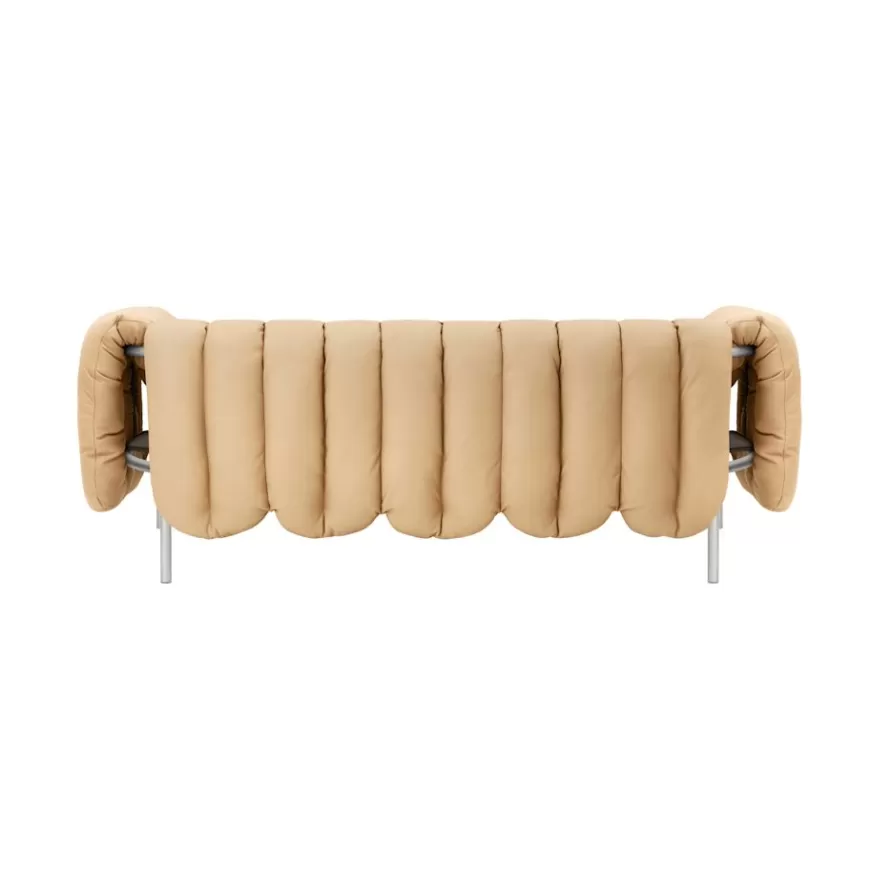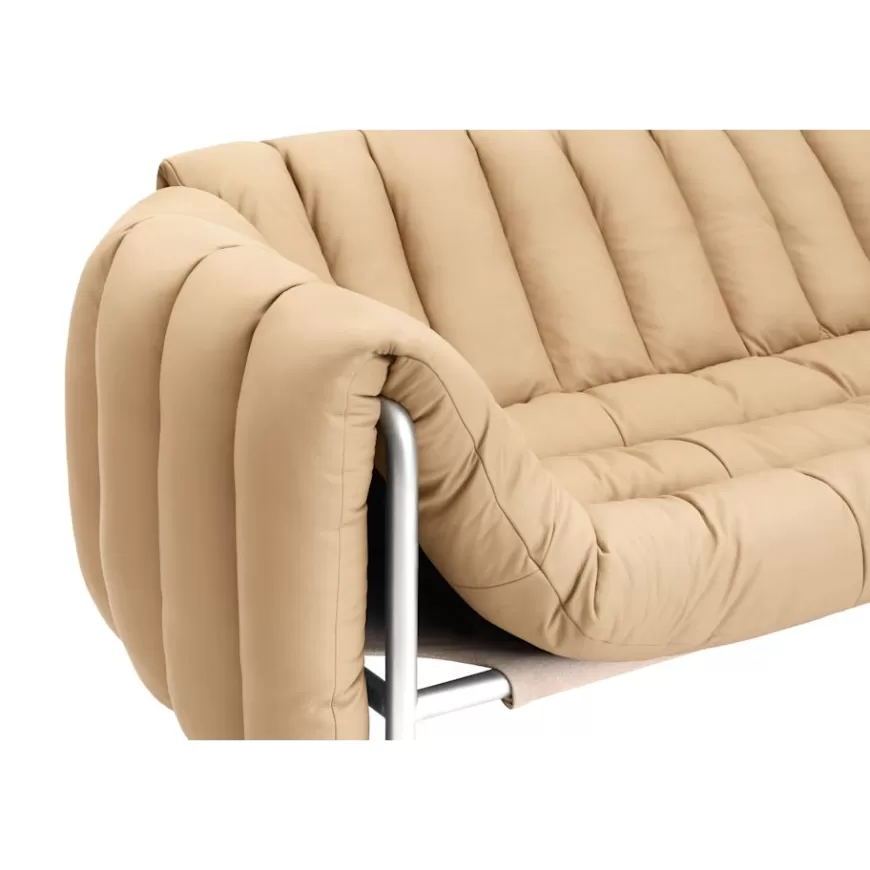 Voluminous, plush, instantly recognizable, the Puffy series by Faye Toogood has quickly become a coveted contemporary standard. This stylish seating offers maximum impact and extreme comfort. The Puffy Sofa is a variation on a theme, sharing all the same qualities as its Puffy siblings, but in a size big enough to share. Sink into the extravagant quilt-like upholstery alongside friends, and you can indulge in the reassuring comfort of the plump padding with loved ones. The Puffy family is made up of a generous upholstery cover supported on a rigid steel frame. Our Puffy Sofa is a 2.5 seater, meaning it is compact enough for small spaces, yet luxuriously roomy for a plus-one situation. The Puffy Sofa frame is available in powder-coated or sand-blasted steel finishes and a choice of thick canvas or luxurious leather upholstery.