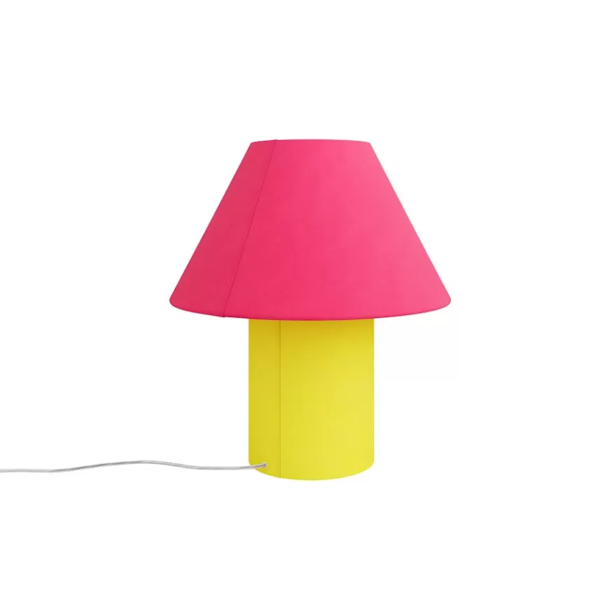 Toto is an irrepressible burst of color and light. Its silhouette is that of an archetypal lamp, all-angled shade and a chunky base. But that is where the familiarity ends. Toto is entirely covered from textile as a playful extension of the classic lampshade itself. Material uniformity, coupled with vivid color and graphic pattern, lends the lamp a cartoonish presence. So does exaggerated scale; the Toto Large lamp is blown up, jumbo, never-to-be-ignored, visually giant yet physically light, while Toto Small’s tidy and diminutive size is more than a bit charming. With Toto, Fabien Cappello has designed a joyful, covetable depiction of a lamp. Customers can choose their own combination for shade and base in both Toto Large and Medium variants. Toto Small is available in block colors only.