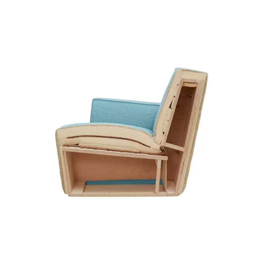 The elemental block-like form of the Hunk armchair is especially characteristic of designer Kwangho Lee. In fact, the Hunk Chair is extra in every way. With exaggerated proportions, a profile so chunky it would make The Flintstones blush, and a ground-breaking construction made entirely from natural materials, Hunk is a whole lot of easy seating and conscientious furniture design. Although geometric in form, the chair’s deep natural upholstery is made for melting into – natural latex and coco mat provide extreme cushioning whilst a fine boucle textile creates a super soft finish. Hunk is destined for lounging greatness.