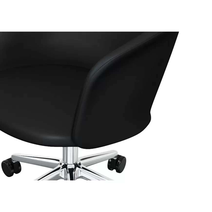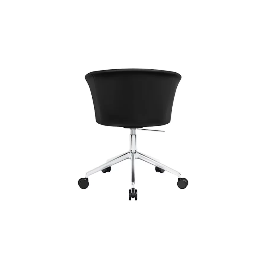 The Kendo Chair’s soft, wrap-around upper offers an appealingly ergonomic seating experience. Simultaneously protective and inviting, this design by LucidiPevere offers a shielding shape combined with a gentle embrace. The generous seat is wide and comfortable, allowing you to move freely, shift position, express yourself. Whether around a boardroom or a dining table, Kendo keeps you comfortable for long periods of time. Its sturdy welded frame makes this chair built to last.Both Kendo Swivel leg bases are 360° rotational. The 4-star leg base incorporates a return function to keep the chairs perfectly aligned around a table when not in use, while the 5-star leg base has a height adjustable mechanism. All variants are available in powder-coated or polished aluminum.