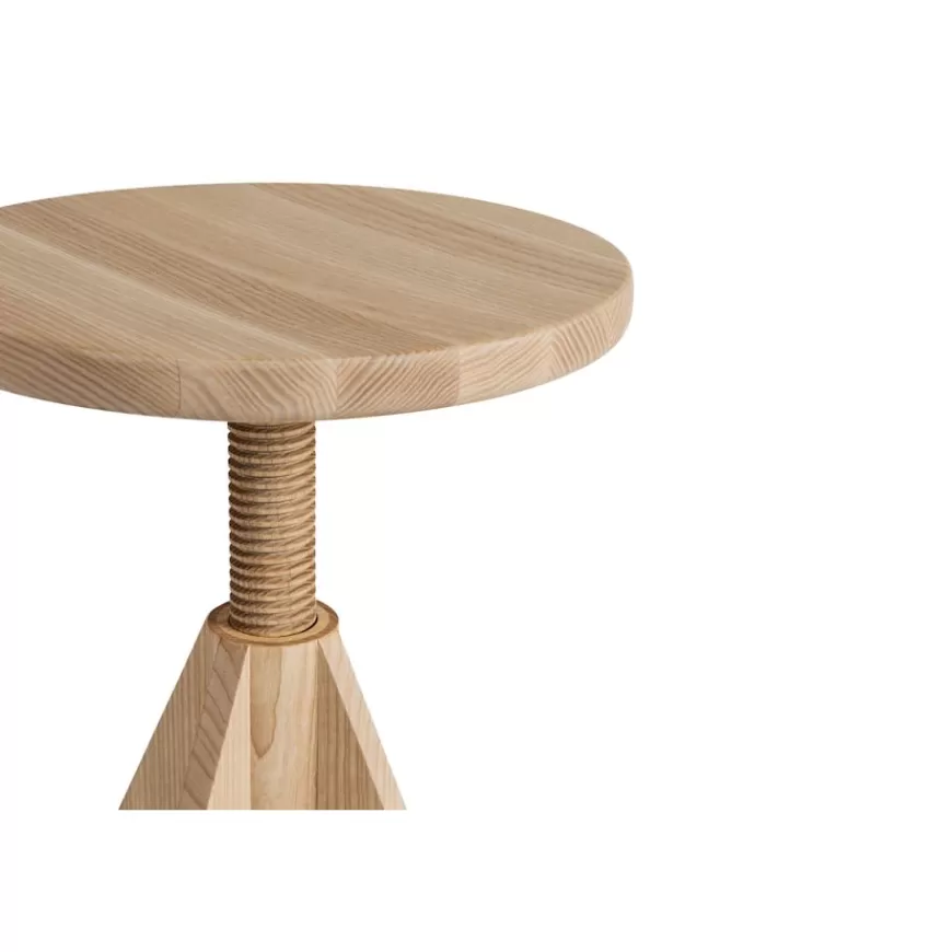 Like a good friend, the All Wood Stool is easy to be around. This functional piece of occasional furniture can be a side table, a seat, or a platform on which to display your favorite things. Adjust its height whenever you like with a simple turn of its screw mechanism. Designer Karoline Fesser nods to midcentury icons such as the Eames Time Life stool as well as functional workshop furniture like sculptors’ tables. As its name implies, this piece is made from solid ash or walnut wood, CNC cut, and lacquered. Choose from two shapes, Rocket or Bobbin.