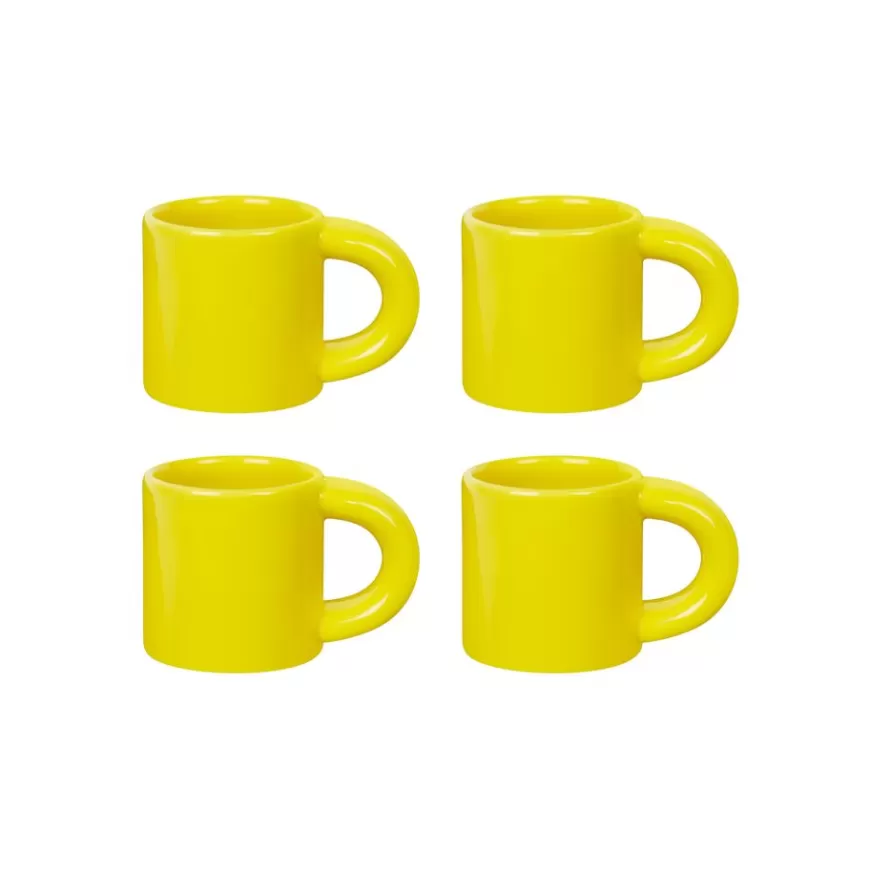Stocky, bulky and bold, Bronto tableware is a pleasing handful of ceramics. An ample mug and chunky espresso cup are immediately recognizable by their uncommonly fat handles. A side plate and bowl’s rounded edges and nonchalant shapes follows suit. Even the smallest of the Bronto family, an eggcup, has serious chunk. As with all Supergroup designs, breezy forms belie technical expertise and, in fact, the exaggerated soft outlines of the Bronto range are a feat of ceramic production. A joyful color palette of high gloss glazes, plus a natural clay option, completes the Supergroup signature. Bronto is intended as your go to set for casual breakfasts, and zippy coffee breaks.‘Small but mighty’ might be a fitting description of the Bronto Espresso Cups. These diminutive vessels pack a punch because of their elemental forms and bold color.